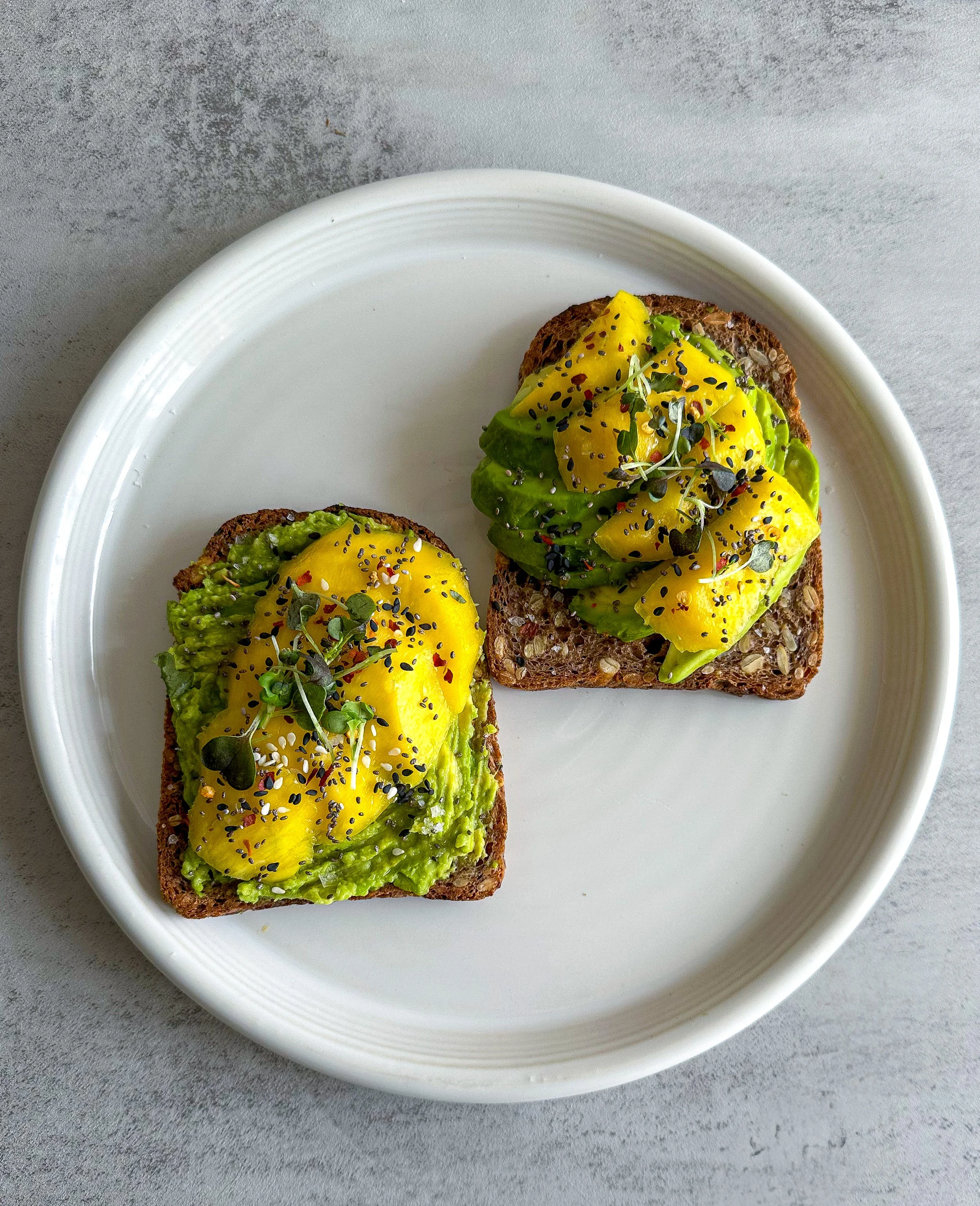 Mango & Avocado Toast Mediterranean Toast Avocado & Soft Boiled Egg Toast Cream Cheese & Lox Sweet Potato Toast
