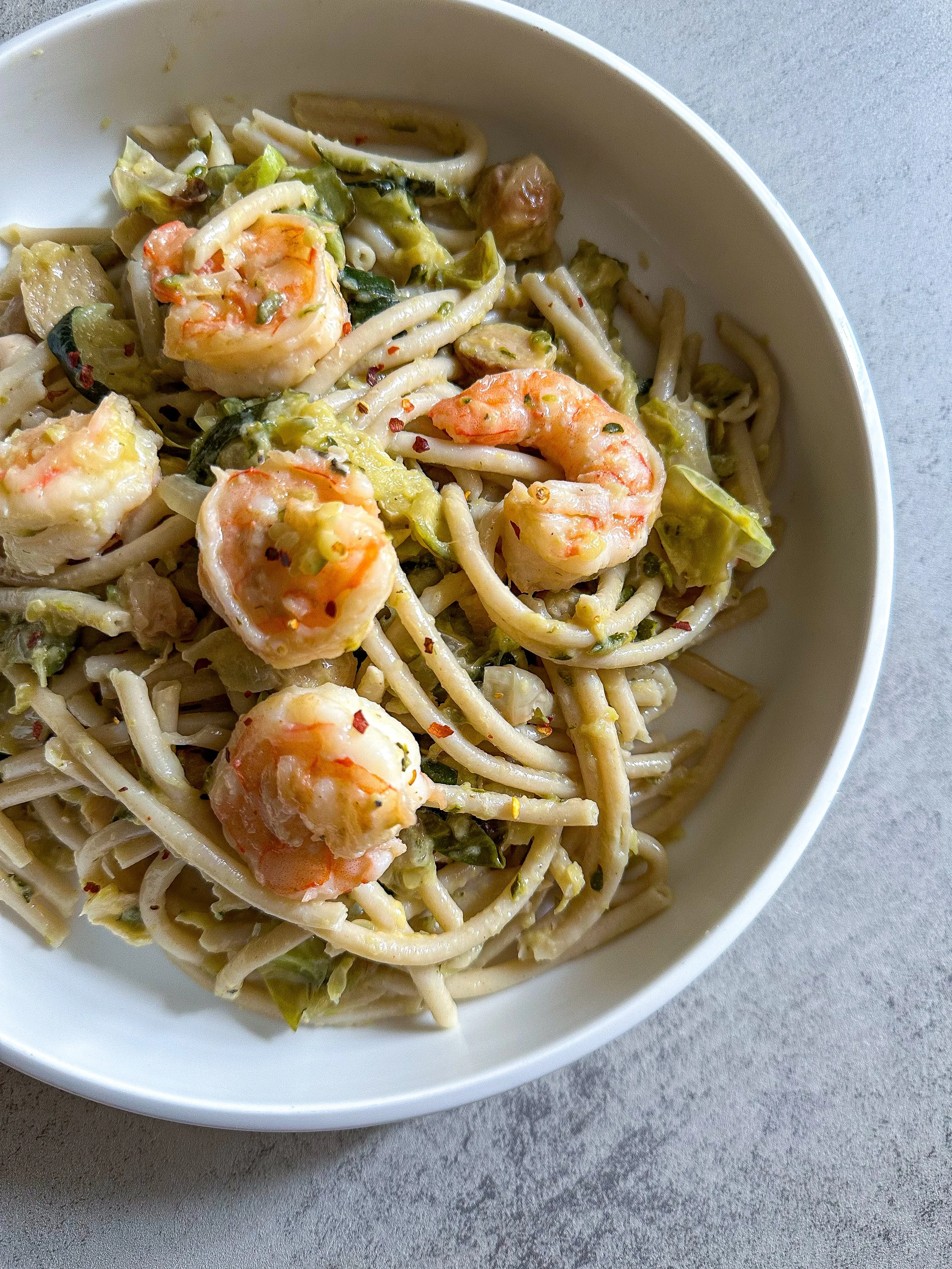 Creamy Zucchini & Brussels Sprouts Pasta (with Optional Shrimp)