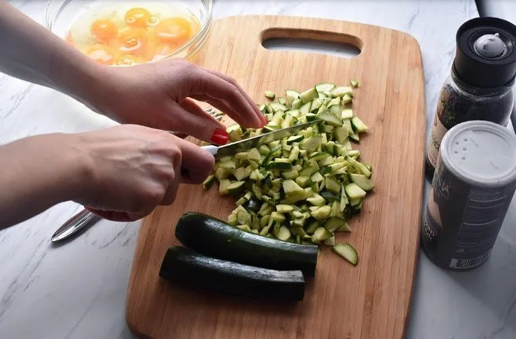 - Add chopped zucchini and chives. Sauté until golden and softened to develop flavor.