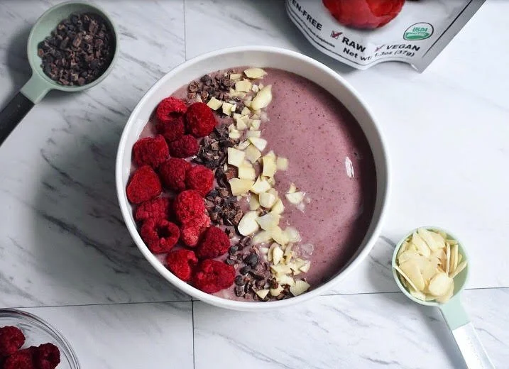 Tropical Pink Smoothie Bowl Raspberry Vanilla Smoothie Bowl Chocolate Covered Strawberry Protein Smoothie Classic Acai Bowl Tropical Green Power Bowl Purple Peach Smoothie Bowl