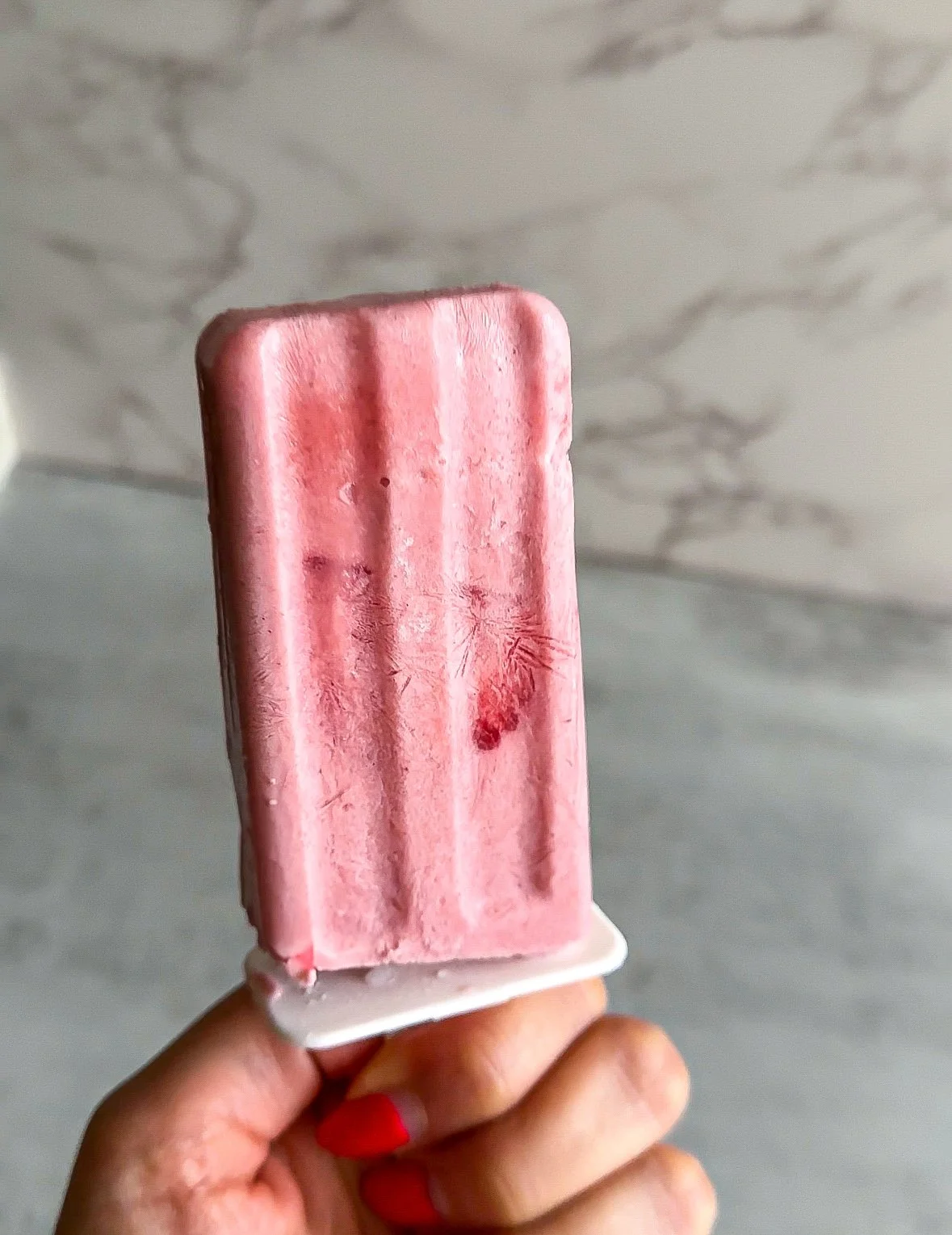 These creamy strawberries & cream pops bring together summer nostalgia and functional nourishment. The strawberry blend offers vitamin C and antioxidants, while the coconut milk adds satiating fats that help support healthy hormones—especially useful in managing inflammation and stabilizing mood.